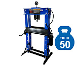 Усилие 50 тонн. Пресс гидравлический. Привод: ручной. Две скорости подачи пуансона. Первая скорость для быстрой подачи штока к рабочей поверхности, вторая (медленно) для выпрессовки. Применяется для запрессовки подшипников, деталей машин и механизмов в гаражах, автосервисах и СТО.