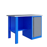 Верстак однотумбовый поставляется в разобранном виде. Нагрузка на столешницу до 600 кг. Стандартный цвет: корпус - серый глянец RAL 7030, ящики и двери тумб - синий RAL 5017. Размеры:855x1400x700 мм. Вес: 86 кг.