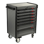 В комплекте: Наборы инструмента 225 предметов + Тележка для инструмента JTC-3931. 7 выдвижных ящиков. Удобная большая ручка. Все ящики снабжены быстросъемными полозьями на роликах, полностью выдвигаются и легко вынимаются из тележки. Каждый ящик оборудован двумя индивидуальными фиксаторами, которые предотвращают произвольное открытие ящика во время передвижения тележки. Наличие центрального замка.