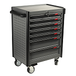 В комплекте: Наборы инструмента 225 предметов + тележка 7 ящиков. Оборудована большой прочной пластиковой ручкой. Корпус тележки оснащен защитными бортами, что сводит к минимуму риск повреждения оборудования и нанесение травм автомеханикам во время перемещения по СТО. Выдвижные ящики оснащены нескользящими вкладками. В комплекте верхний коврик из АБС, для удобного хранения различных мелких деталей. Перфорированные боковые стенки с квадратными отверстиями предоставляют возможность разместить аксессуары для хранения инструментов. Размеры собранной тележки: 485х720х1020 мм.