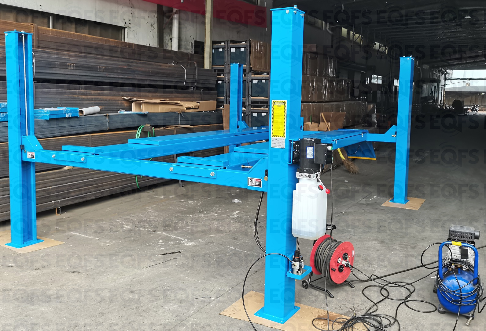 Техническое обслуживание четырехстоечных подъемников необходимо выполнять 1 раз в год. В ТО подъемника входит: Протяжка анкеров, регулировка и смазка тросов. Замена масла. Смазка шкивов и других трущихся деталей. Проверка стопорного механизма.