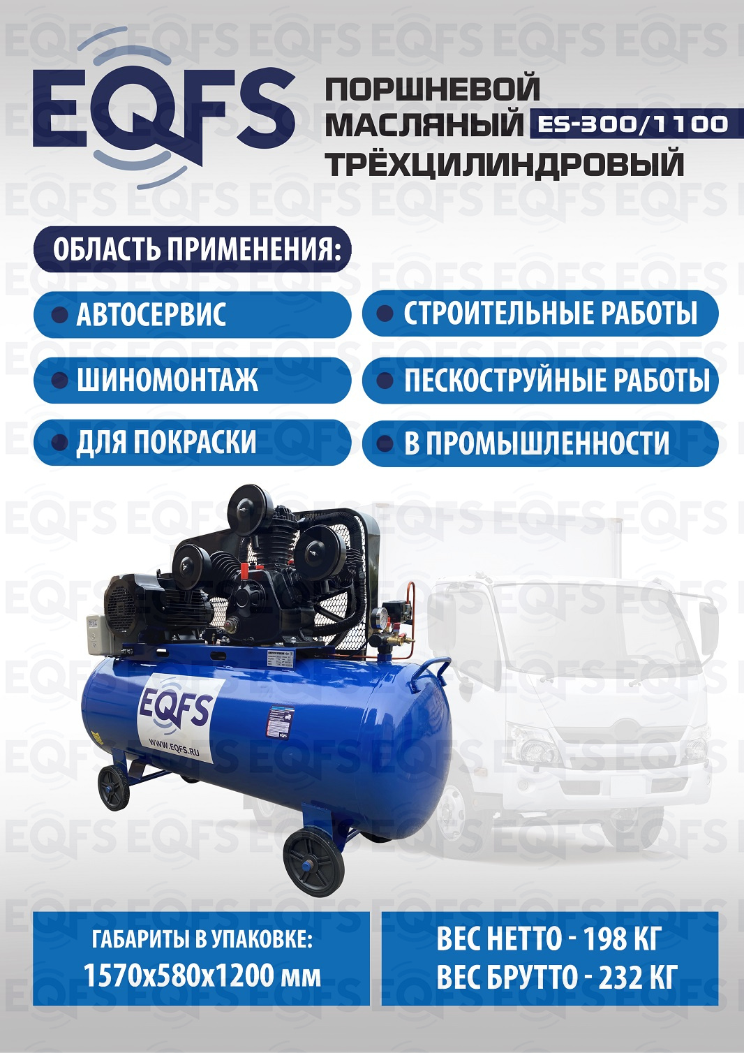 Технические особенности компрессор поршневой ES-300/1100: