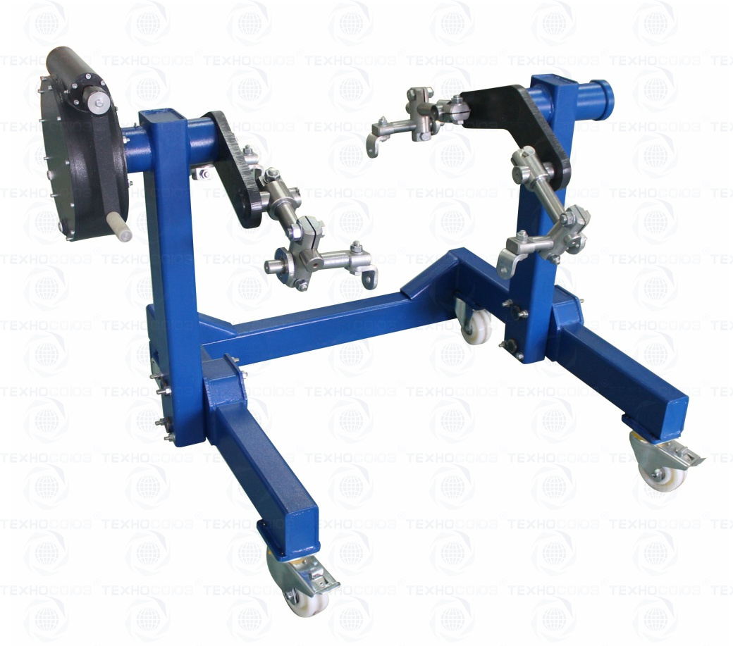 • Самотормозящийся червячный редуктор позволяет повернуть и зафиксировать закрепленный на стенде двигатель или другой агрегат так, чтобы персоналу было удобно качественно производить ремонтные работы;