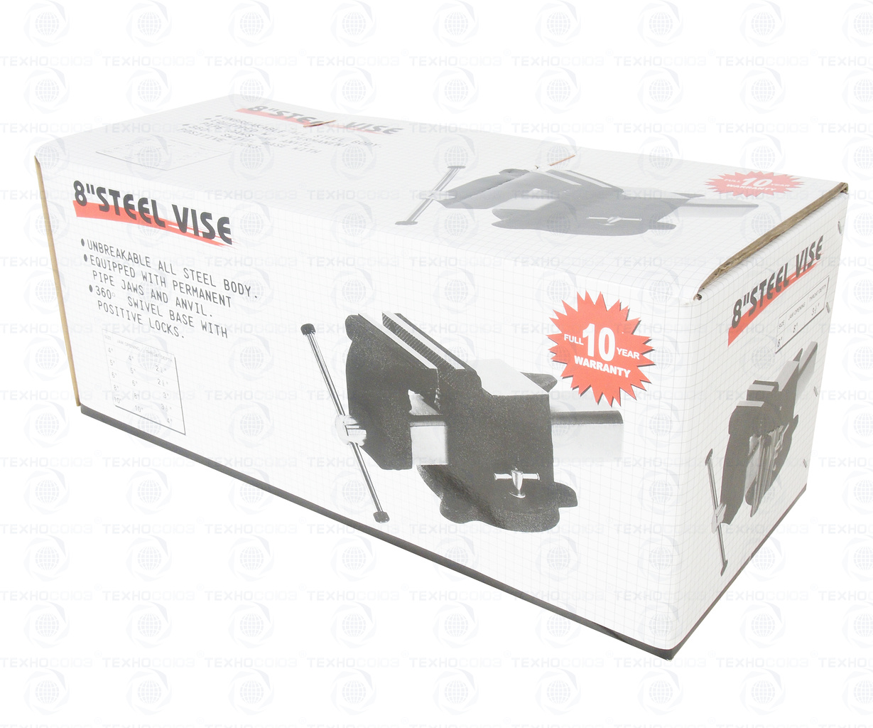 • Специальная конструкция с поворотным основанием позволяет регулировать и фиксировать тиски в нужном направлении.