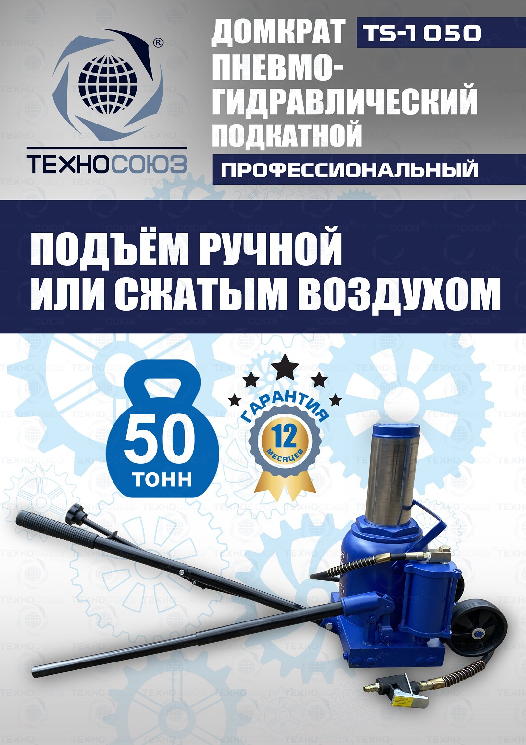 Технические особенности TS-1050 грузовой подкатной пневмогидравлический домкрат 50 тонн: